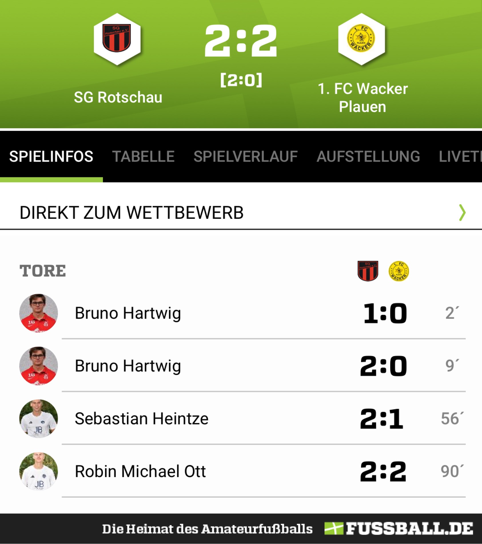SG Rotschau – 1. FC Wacker Plauen 2:2 (2:0)