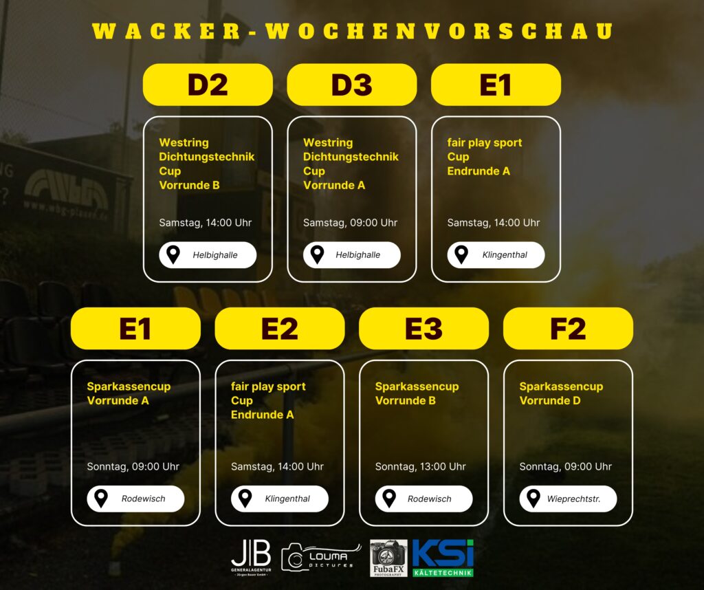 Ansonsten treten die Teams aus dem Bereich der D- bis F-Junioren bei Vorrundenturnieren an und wollen die nächste Turnierrunde erreichen.
