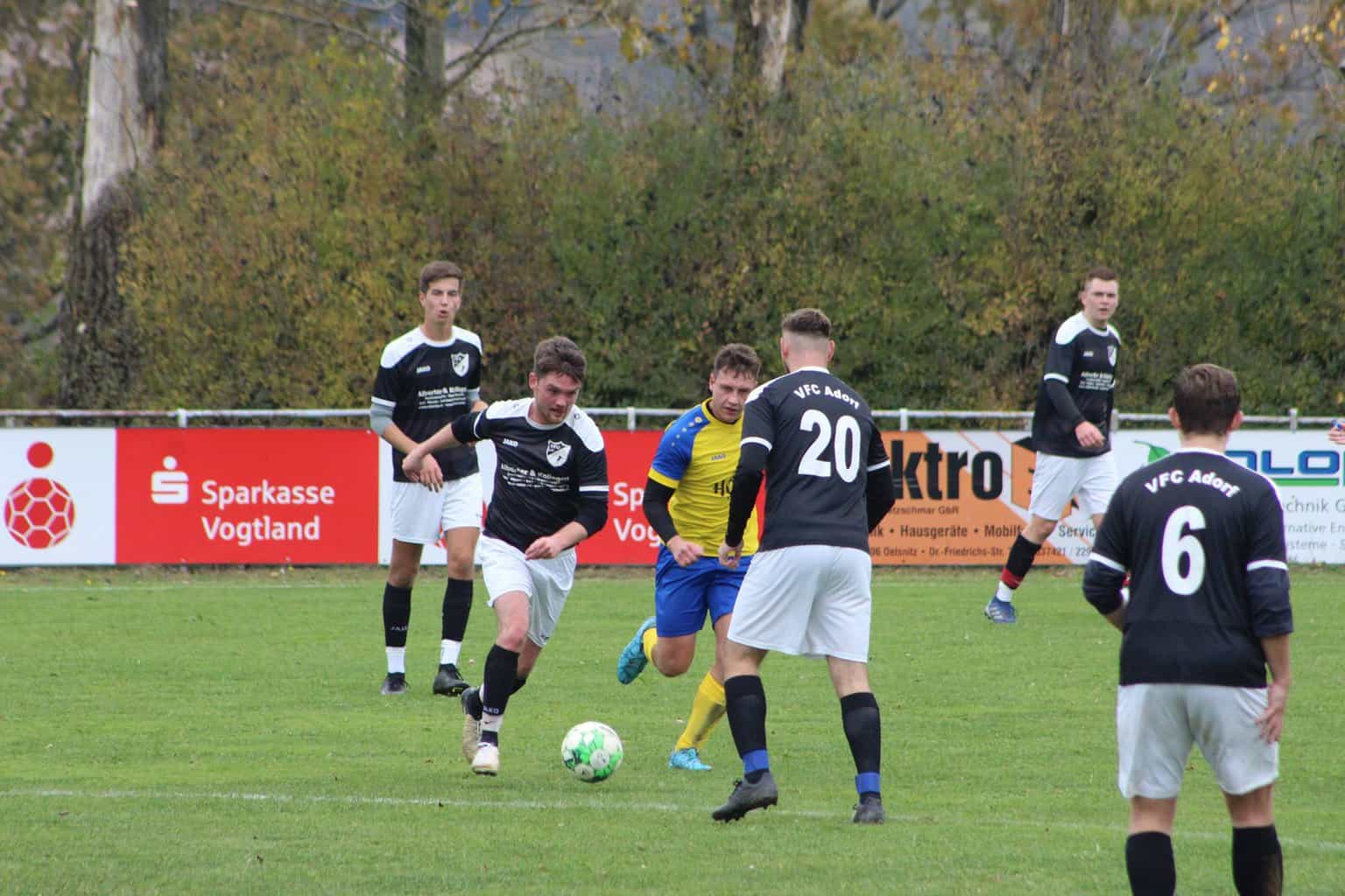 Neutral betrachtet, hätte der der VFC im Derby gegen die SpG Eichigt/Triebel mindestens einen Punkt verdient gehabt. Doch am Ende fährt die Mannschaft mit leeren Händen aus Eichigt ab. Vor gut gefüllter Tribüne entwickelte sich ein Spiel, welches nicht unbedingt von Höhepunkten, jedoch mehr von der Spannung geprägt war. Die Gastgeber gingen durch einen „Kann-Elfmeter“ in der 11. Spielminute in Führung. Der gefoulte Zenner schloss selbst souverän ab. Adorf spielte munter mit, blieb aber wie auch die Heimelf recht „torhüterfreundlich“ im Abschluss. Je länger das Spiel dauerte, desto mehr presste Adorf die Spielgemeinschaft in die eigene Hälfte. Am Ende zählen aber Statistiken wie Ballbesitz nichts, wenn der Gegner aus seiner einzigen Chance ein Tor macht. Für den VFC war es das dritte Spiel in Folge, wo man gefühlt den ansehnlicheren, aber ineffizienteren Fußball zeigte. Nächste Woche geht es für Adorf erneut auswärts beim ESV Lok Plauen um Punkte. (esch)