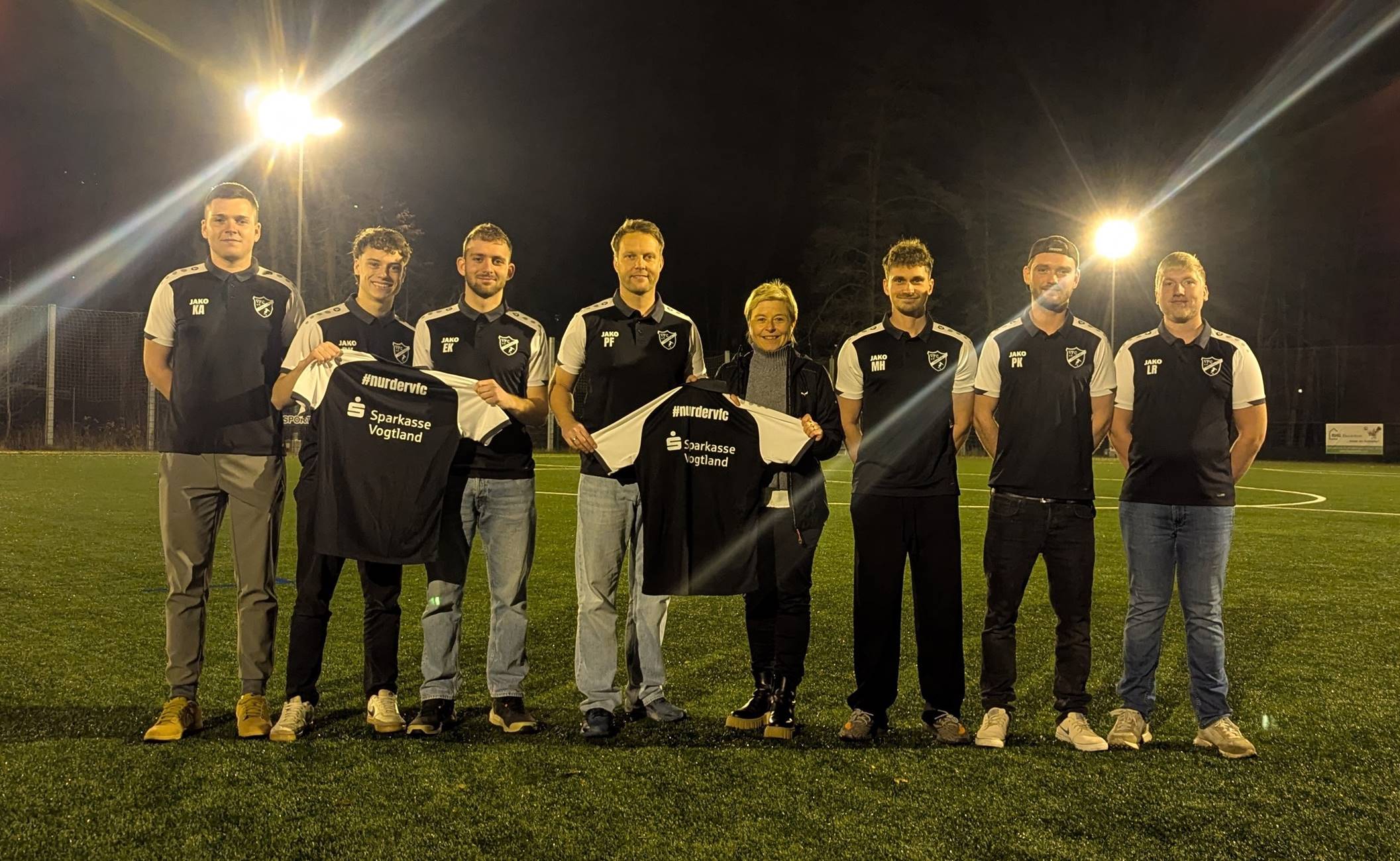 Kurz vor Weihnachten gab es für die 1. Mannschaft des VFC Adorf noch eine schöne Überraschung. Die Herren sowie das Betreuerteam durften sich über einen neuen Satz Poloshirts freuen, der heute von Antje Hofmann, Leiterin der Sparkassen-Filiale Adorf, überreicht wurde. Die Sparkasse Vogtland steht uns seit vielen Jahren als verlässlicher Partner zur Seite und hat den Verein schon bei vielen Projekten unterstützt, zum Beispiel beim Vereinsbus, dem neuen Rasentraktor oder als Förderer unserer Liveübertragungen auf Staige.tv. Es ist großartig, auf einen Partner zählen zu können, der unseren Weg so engagiert begleitet. (esch)