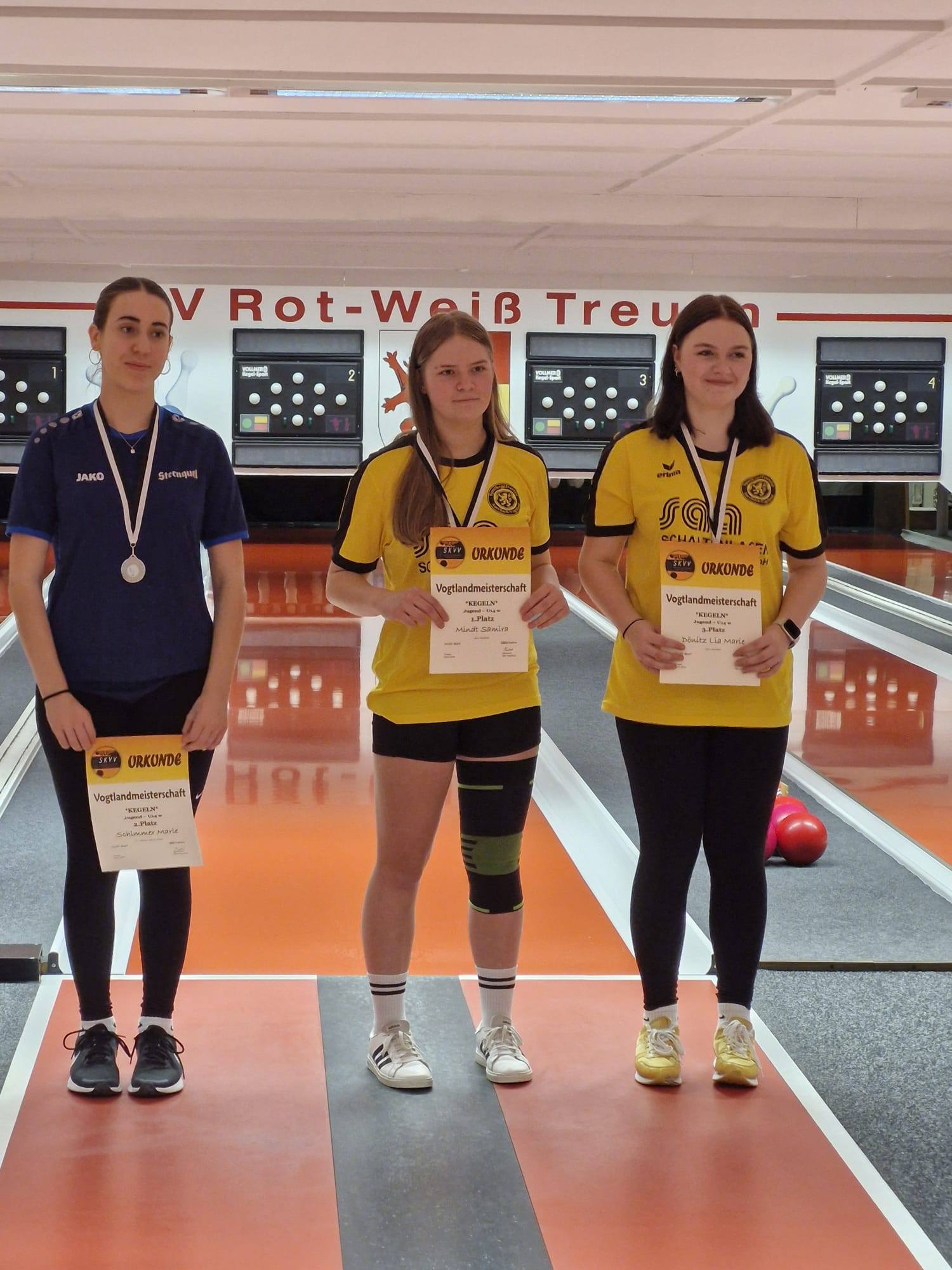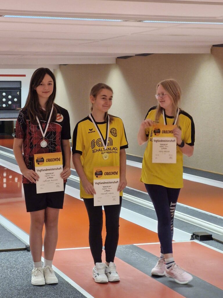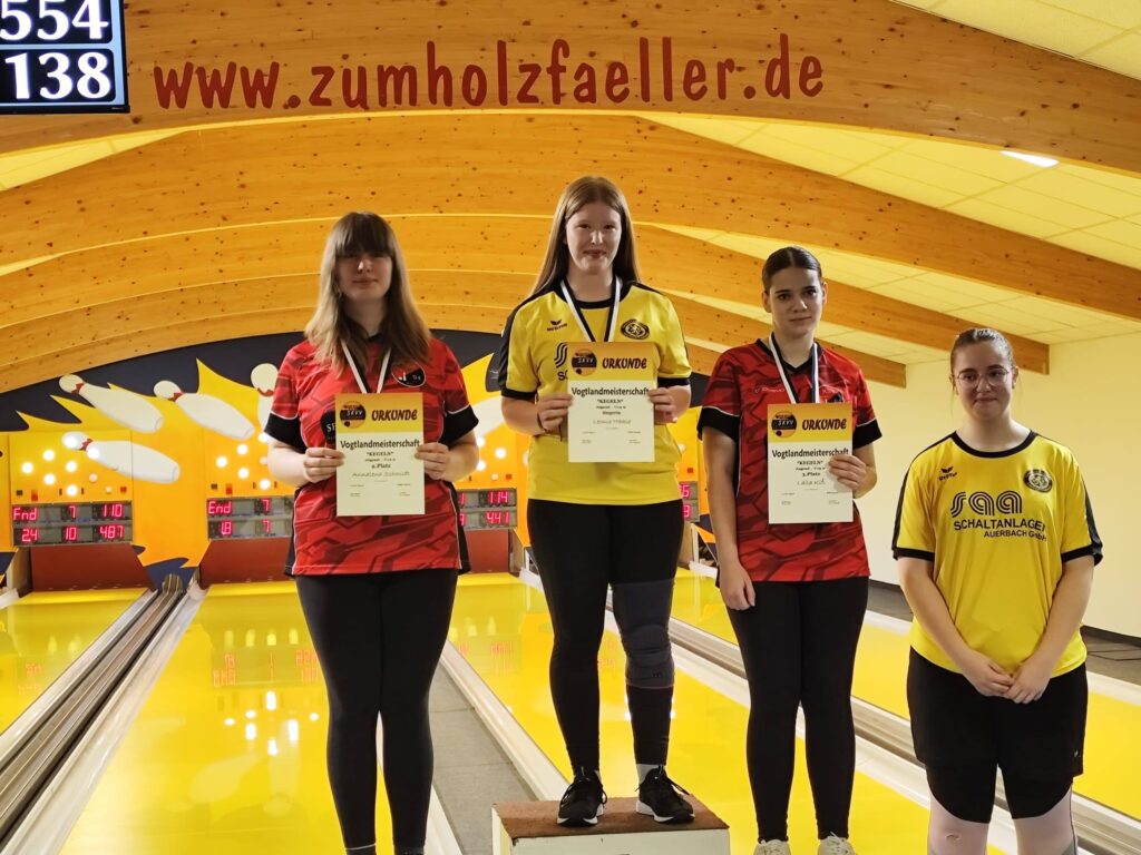 1. Samira Mindt 521 Kegel (1024 gesamt), 3. Lia Dönitz 476 Kegel (948), 5. Stella Tröger 476 Kegel (901)