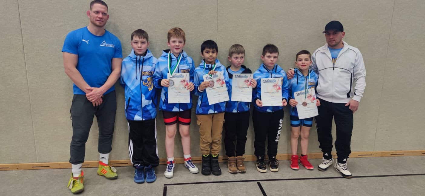 Sieben Nachwuchsringer aus Markneukirchen nahmen mit ihren Eltern und Trainern die 300-km-Fahrtstrecke auf sich und brachten neben vielen Erfahrungen auch schöne Erfolge wieder mit nach Hause, wobei es für die meisten der jungen Akteure die erste Meisterschaft überhaupt war.