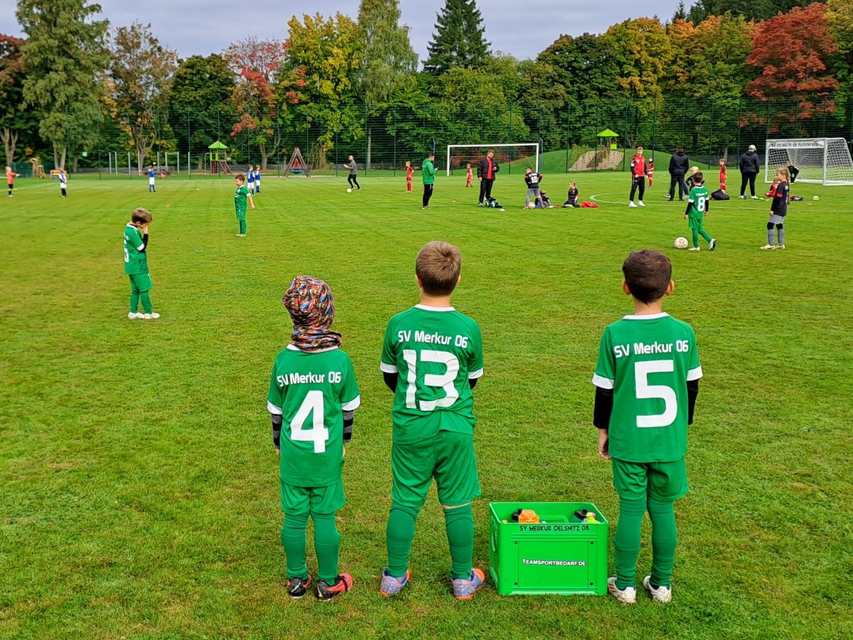Für unsere F1-Junioren stand der 6. Spieltag – diesmal in Werda – an und die Zielsetzung, eine Platzierung in den Top 2, sprach man diesmal im Vorfeld klar aus. Das Potenzial dieser Mannschaft, die ansteigende Formkurve der letzten Wochen und eine volle Auswechselbank sorgten für viel Selbstbewusstsein und Motivation groß aufzuspielen. Gegner des heutigen Tages waren die SpG Werda/ Kottengrün, FC Teutonia Netzschkau I & II und BC Erlbach II. Durch 5 Teilnehmer hatte man das erste Spiel frei und spielte sich am Rande schon warm für das erste Duell gegen die SpG Werda. Man kam dann auch gut in dieses Spiel, vorn setzten Finn & Max immer wieder Akzente und hinten ackerten Leon und Paul unermüdlich gegen die flinken Stürmer des Gegners. Und wenn unserer Abwehr doch einmal die Balleroberung misslang, hielt Emil im Kasten einfach alles und brachte die gegnerischen Angreifer zur Verzweiflung. So stand dann auch verdient hinten die Null, vorn die 4. Den Schwung des starken Beginns wollte man direkt in Spiel 2 mitnehmen, gegen die uns bisher unbekannte 1. Mannschaft der Netzschkauer Teutonen. Schwungvoll ging es los, Max wirbelte auf der rechten Seite und dem Gegner flogen nur so die Bälle um die Ohren, leider brachte dies keine Tore. Auch Finn versuchte von links sein Glück und kam nicht zum Erfolg, im Gegenteil schnell kassierte man im Anschluss 4 Tore, weil man selbst nicht mehr die Ordnung behielt und immer einen Tick zu langsam agierte. Lobenswert dennoch, dass man sich nicht aufgab und nach einer Durchwechslung doch noch 2 Tore, wenn auch per Brechstange, erzielt wurden und so noch auf ein 2:4 am Ende heran kam. Danach musste man sich kurz sammeln, durchatmen und nochmals besprechen, was besser funktionieren sollte. Und irgendwie war das dann auch ein „Hallo Wach“ und man zeigte im folgenden Spiel viel Spielwitz und noch mehr Laufbereitschaft und jeder durfte sein Können nochmal auf dem Werdaer Grün unter Beweis stellen. Man setzte den Gegner – BC Erlbach II so unter Druck, dass dieser nur Fehler machen konnte und schoss sich den Frust von der Seele. Endstand somit 8:1 für Merkur I und Anreiz genug, auch im letzten Spiel gegen Teutonia Netzschkau II genau da weiter zu machen. So kam es dann auch, man kam zwar zunächst etwas schwerfällig ins Spiel, aber dann lief die Tormaschinerie auch schon an, jeder wusste was zu tun war und rief genau das auch ab. Abpfiff – nochmal 8:1 gewonnen, Platz 2 gesichert und man konnte zufrieden die Heimreise antreten. Nun heißt es noch eine Woche trainieren, Ferien genießen und am letzten Spieltag dort anknüpfen, wo man hier aufgehört hatte. (MB)
