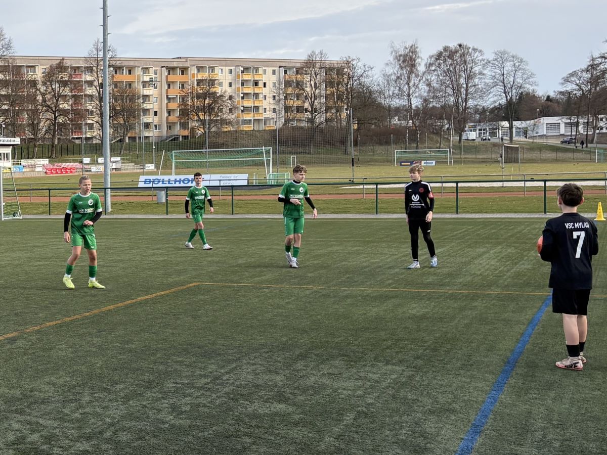 Zum 2. Punktspiel in der Meisterrunde empfing die D1 des SV Merkur 06 Oelsnitz am Samstag auf dem heimischen Kunstrasen die SpG VSC Mylau-Reichenbach/ SG Rotschau. Nach dem erfolgreichen Start in der vergangenen Woche sollte nun der nächste Sieg folgen. Bereits in der ersten Spielminute steckte Oskar Röder einen guten Pass durch die gegnerische Abwehr, diesen konnte Nils Tunger erlaufen und traf direkt zum 1:0. Danach erhöhte Matteo Fischer in der 5. Minute auf 2:0 und wenig später Moritz Engelbrecht auf 3:0 (7.). Unsere Mannschaft spielte weiter konzentriert und geduldig, Nils Tunger vollendete dann in der 19. und 20. Minute zwei Angriffe, somit stand es 5:0 für Merkur Oelsnitz. Und zwei Minuten später legte auch Matteo Fischer nochmal nach, das Tor zum 6:0 war gleichzeitig der Halbzeitstand. Auch nach dem Seitenwechsel war unser Team gleich wieder wach, einen gut getretenen Eckball von Tyler Schaar versenkte Maurice Michael mit einem wuchtigen Kopfball in der 32. Spielminute zum 7:0 ins Tor. Direkt im Anschluss setzte sich Matteo Fischer gegen die Abwehr der Gäste durch und blieb auch beim Abschluss cool, so stand es 8:0. In der 36. traf dann Fabien Michael zum 9:0, wenig später war es Oskar Röder, der ansehnlich auf 10:0 erhöhen konnte. Danach nutzte Mylau-Reichenbach dann eine Chance und konnte mit dem 10:1 zumindest den Ehrentreffer erzielen. In den letzten 10 Spielminuten legten dann Nils Tunger und Matteo Fischer nochmal jeweils zwei Tore nach, was am Ende einen ungefährdeten aber dennoch stark herausgespielten 14:1-Sieg für den SV Merkur Oelsnitz zur Folge hatte. (TP)