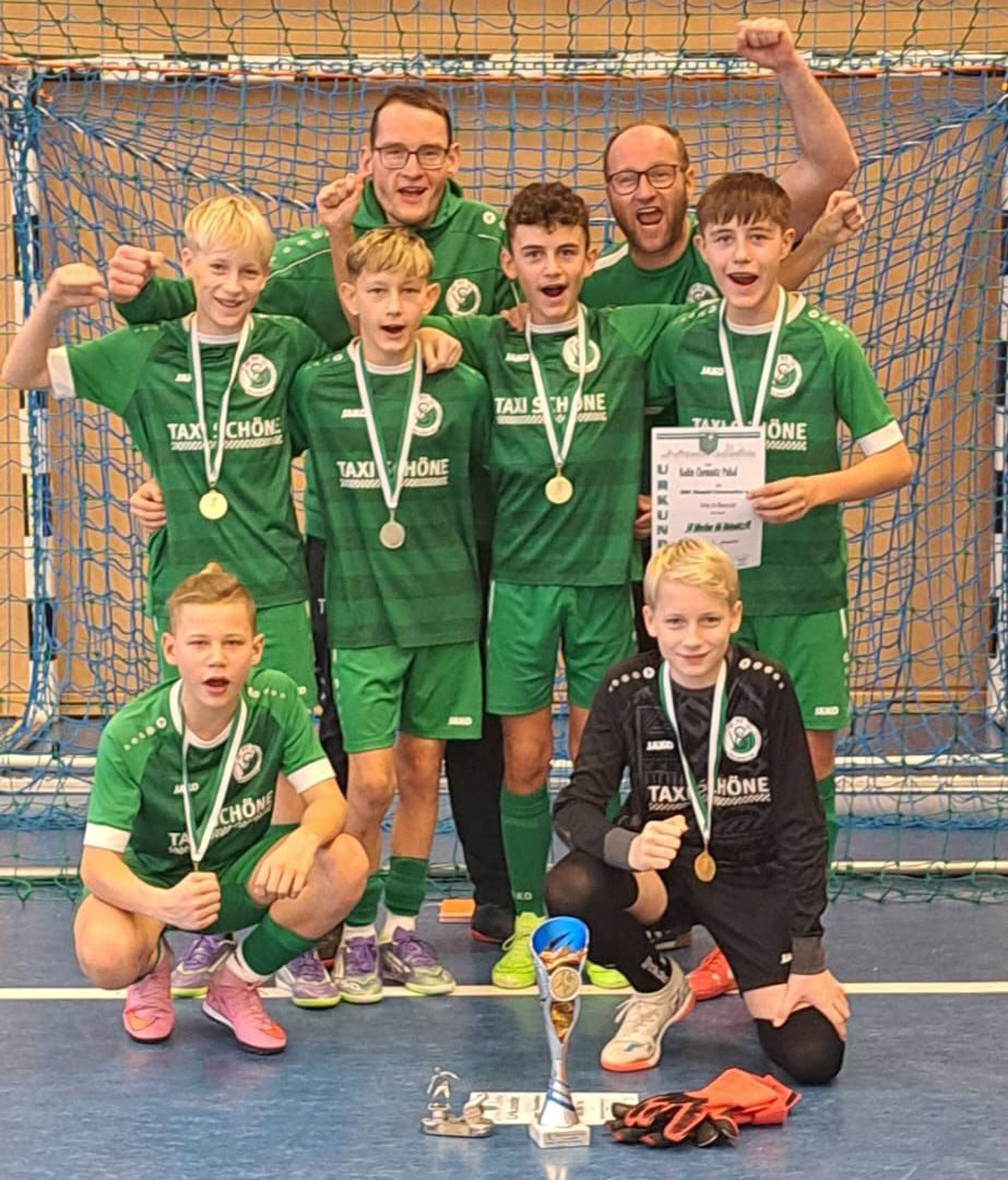 Neben dem verdienten Turniersieg stellte unsere Mannschaft mit Oskar Röder den besten Torschützen an diesem Tag, dadurch gab es zwei tolle Pokale sowie die Goldmedaille für unsere Jungs. (TP)