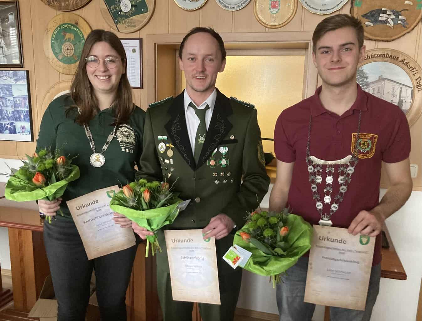 Ein Höhepunkt der Veranstaltung fand mit der Verleihung der Kreiskönigsketten statt. Als neue Kreisschützenkönigin nahm Luisa Strobel von der PBSG zu Reichenbach die Königskette in Empfang. Sie setzte sich zum Kreiskönigsschießen vergangenes Wochenende in Rothenkirchen gegen ihre Konkurrenz durch und schoss mit einem Teiler von 7 die „beste Zehn“.