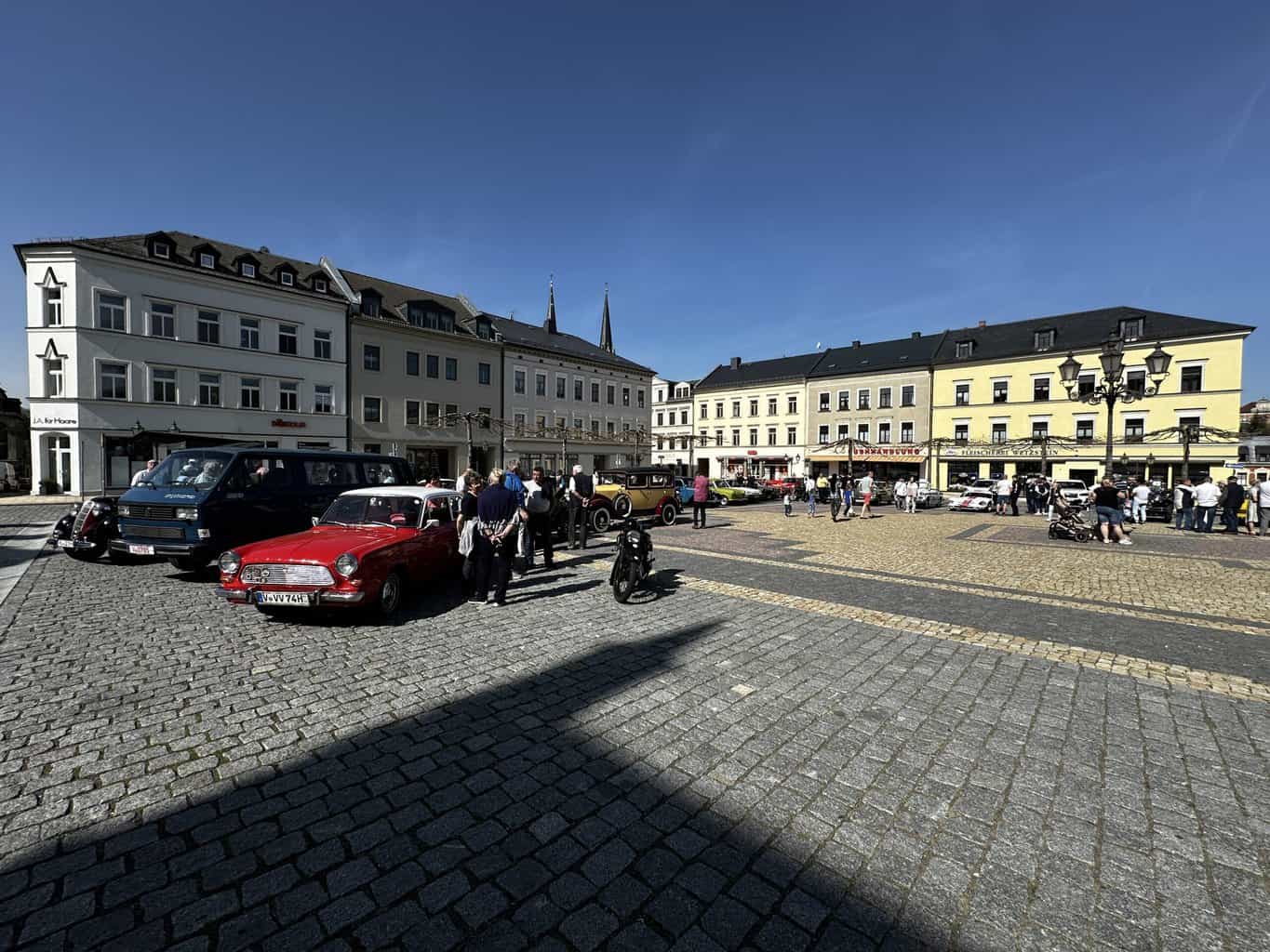 Am 1. Mai starteten bei bestem Wetter die Oelsnitzer Oldtimerfreunde in 2024 erstmals gemeinsam die Motoren. Bei zünftiger Blasmusik war der Treffpunkt der Oelsnitzer Marktplatz, auf dem zu diesem Zeitpunkt auch noch der Maibaum aufgestellt wurde. Um 11:00 Uhr starteten die historischen Fahrzeuge dann durch das obere Vogtland bis nach Breitenfeld, wo bei allerhand Fachgesprächen ein sehr guter Mittagsschmaus im Alpenhof anstand.