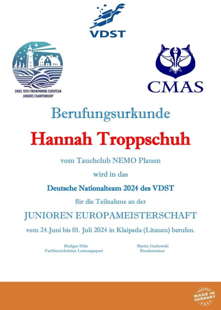 Bereits im Vorfeld zu den Meisterschaften wurde Hannah in das deutsche Nationalteam 2024 für die Junioren Europameisterschaften berufen. Diese finden Ende Juni in Klaipedia in Litauen statt. Wir wünschen Viel Erfolg!