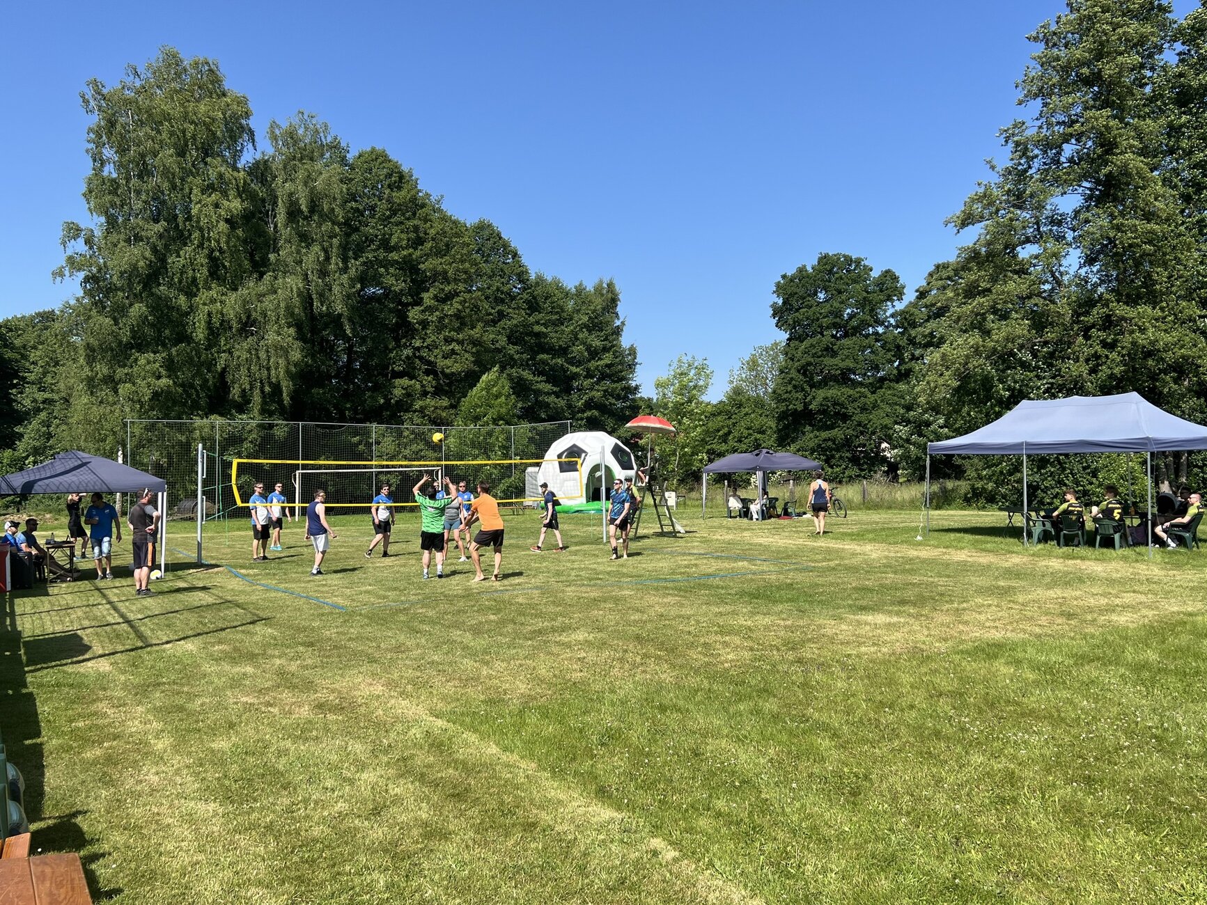 Im Rahmen unseres Jubiläums begann es am Freitag in einer gemütlichen Runde mit dem Inselkino aus Rodewisch. Der nostalgische Kinobus kam zunächst bei den Kleinen und später bei den Großen gut an. Samstag Früh stand dann der Volleyball im Vordergrund. Leider mussten wir ein paar kurzfristige Absagen hinnehmen, es war aber trotzdem ein sehr angenehmes kleines Turnier auf gutem Niveau. Das Team vom STVO belegte den ersten Platz, gefolgt von den Jungs und Mädels von der Sperkenfront und auf Platz 3 landete der SSV. Am Nachmittag empfing die erste Mannschaft von der Spielgemeinschaft zum letzten Punktspiel den SV Coschütz. Wir lagen relativ schnell mit 0:2 zurück, drehten aber die Partie und fuhren so am Ende einen verdienten 4:2 Erfolg ein. Die Tore erzielten Clemi, Finley, Tim und Jannik. Im Anschluss wurde zudem durch André die Meisterehrung durchgeführt und diese wurde ausgiebig gefeiert – Glückwunsch Jungs, das habt ihr euch mehr als verdient! 🔵⚪️🔴⚽️ Danach rollte der Ball weiter, denn es standen sich die „alten“ Haudegen unter dem Namen Oberdorf gegen Unterdorf gegenüber. Hier waren natürlich nicht nur Jungs aus Tirpersdorf aktiv, sondern auch gute alte Bekannte aus den Ortsteilen. Am Ende setzte sich das Unterdorf mit 3:2 durch – es hat allen Spaß gemacht und es gab keine Verletzungen 😉 Am Abend legten dann die Jungs von Moby Sick einen überragenden Auftritt hin. Bei mehr als guter handgemachter Musik wurde getanzt, gefeiert und somit war für einen perfekten Ausklang gesorgt. Wir möchten uns bei allen fleißigen Helfern und Gästen bedanken, die zu dieser schönen Feier beigetragen haben!
