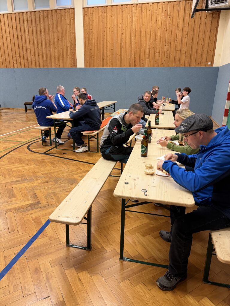 Es wurde gegrillt, geschlemmt und viel erzählt, die Jugendspieler nutzten  außerdem noch mal die Möglichkeit für ein kleines Training und auch die Gäste vom SV Coschütz blieben noch zum gemütlichen Beisammensein in der Halle.